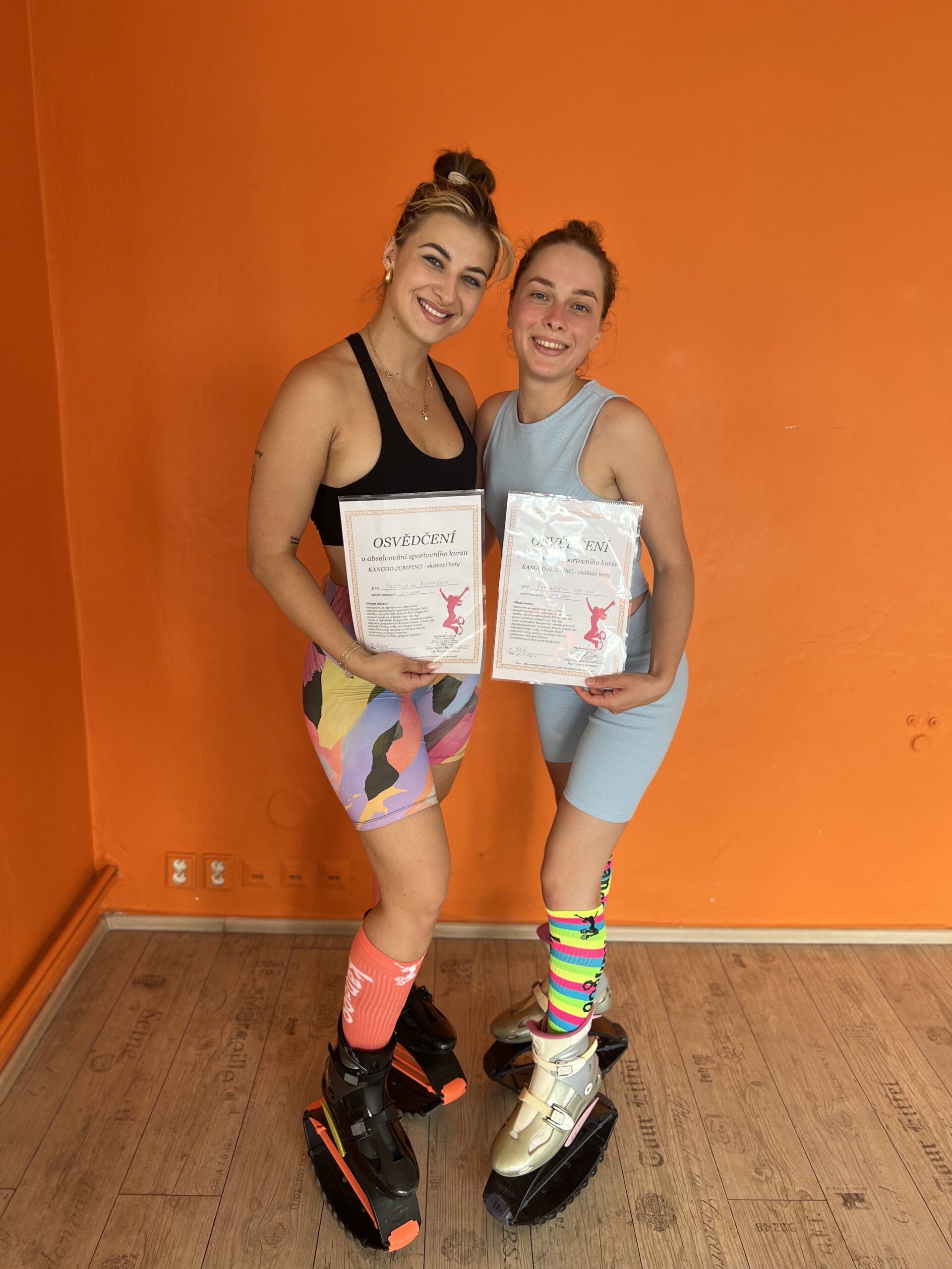 Kontaktujte nás pro přesný termín a více informací, rádi vám vše potřebné vysvětlíme, naučíme jak s botkama zacházet, pro koho jsou vhodné, jak se na nich skáče a posiluje, ukážeme základní kroky a sestavy atd., a poté budete moci pořádat své vlastní lekce na skákacích botkách (toto osvědčení neslouží pro vydání živnostenského oprávnění, ale poradíme, jaké jsou možnosti, jak rozjet vlastní hodiny i bez oprávnění – fitness instruktora, garanta atd.).