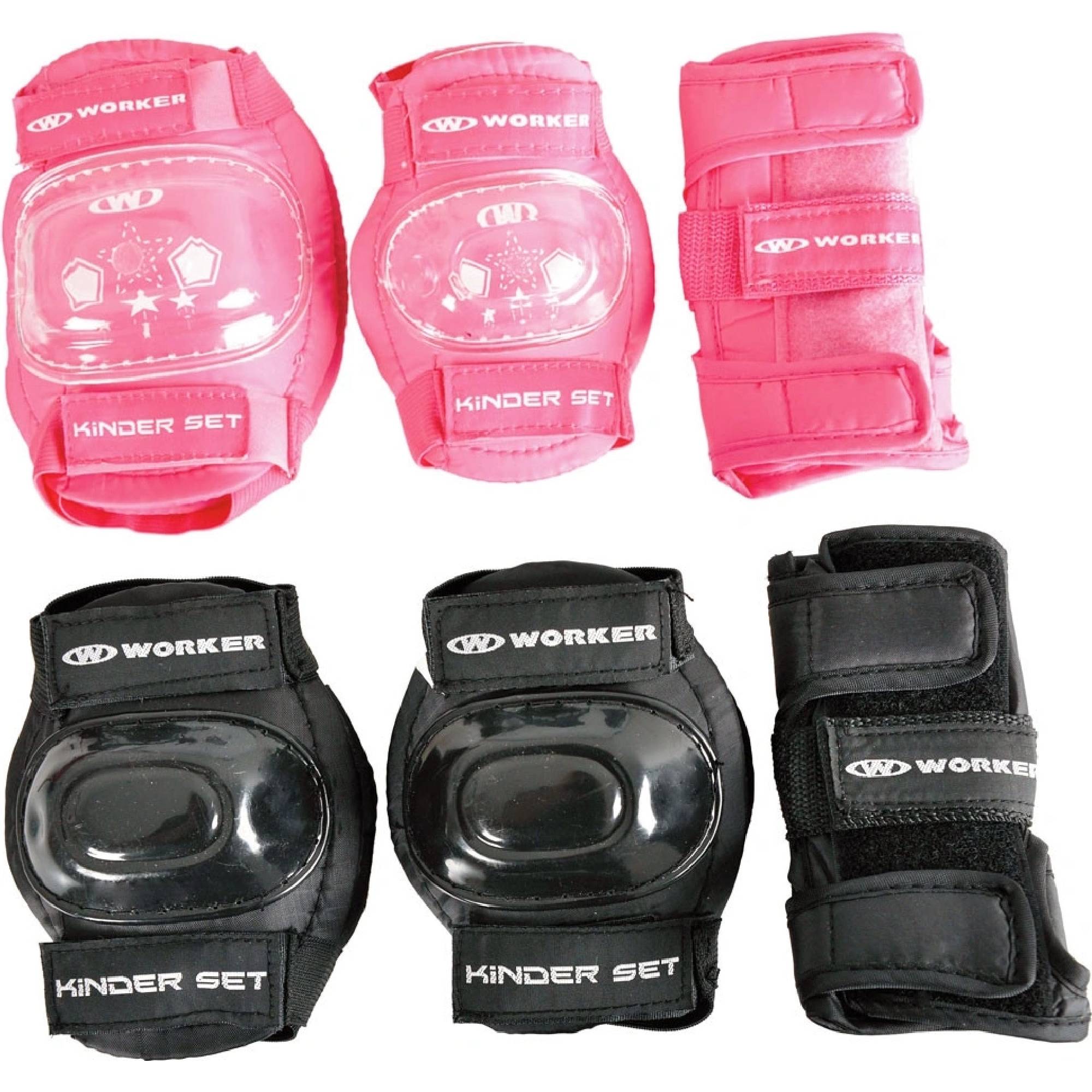 6-piece protective gear set for children in black or pink. Protects knees, palms, and elbows. Suitable for a wide range of sports. Designed for children aged 6–14. Choose pink or black protective gear for kids.